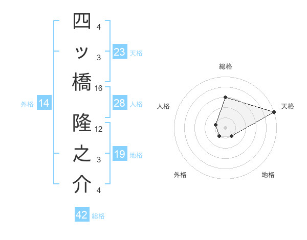 四ッ橋 隆之介さんの天格は23画の5点!