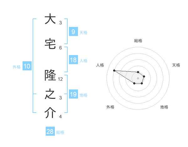 大宅 隆之介さんを姓名の画数から五運を鑑定