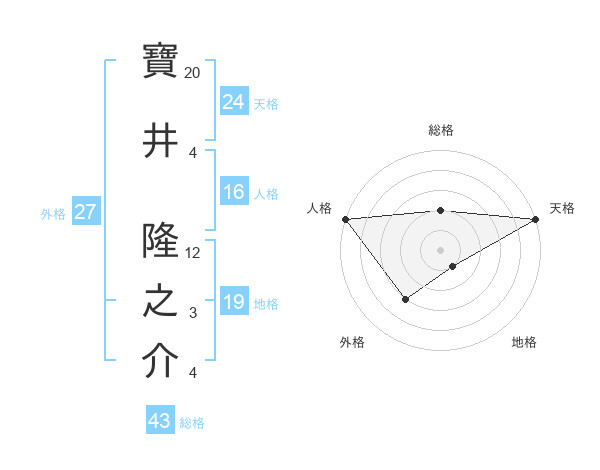 寶井 隆之介さんを姓名の画数から五運を鑑定