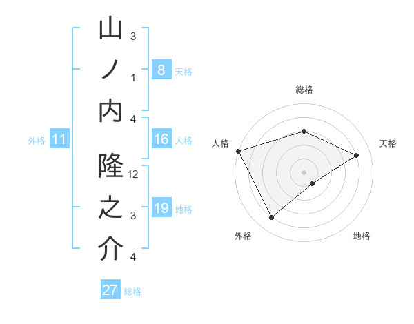 山ノ内 隆之介さんの外格は11画の4点!