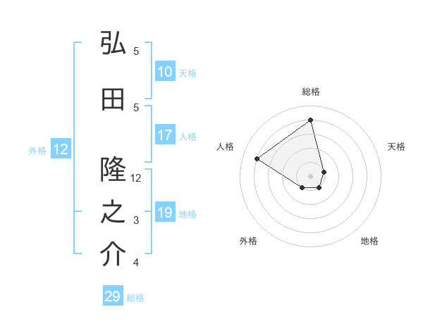 弘田 隆之介さんを姓名の画数から五運を鑑定