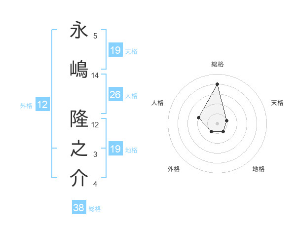 永嶋 隆之介さんの総格は38画の4点!