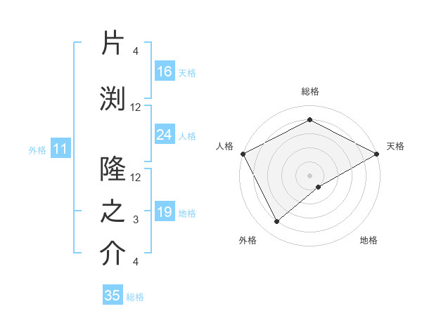 片渕 隆之介さんを姓名の画数から五運を鑑定