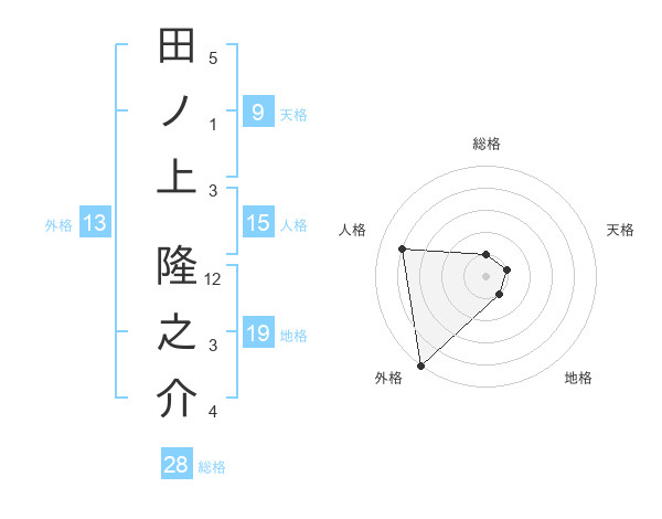 田ノ上 隆之介さんを姓名の画数から五運を鑑定