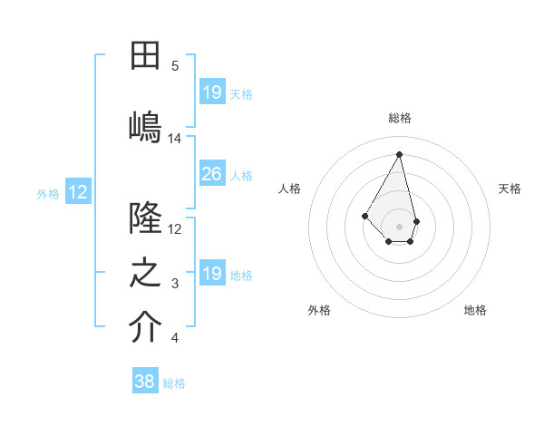 田嶋 隆之介さんを姓名の画数から五運を鑑定