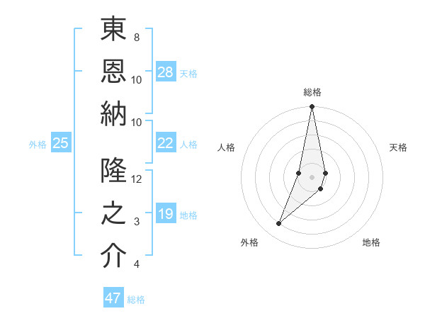 東恩納 隆之介さんを姓名の画数から五運を鑑定