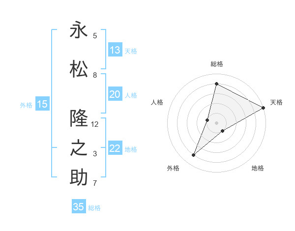 永松 隆之助さんを姓名の画数から五運を鑑定