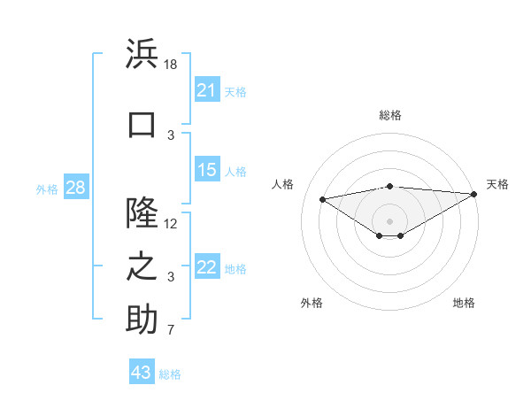 浜口 隆之助さんを姓名の画数から五運を鑑定