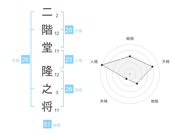 二階堂 隆之将さんを姓名の画数から五運を鑑定