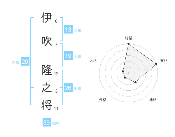 伊吹 隆之将さんを姓名の画数から五運を鑑定