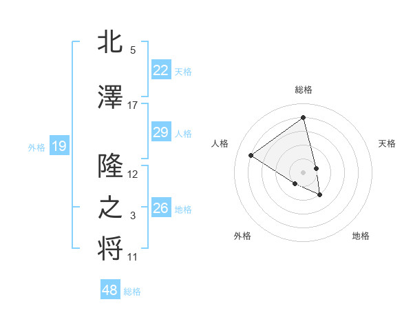 北澤 隆之将さんを姓名の画数から五運を鑑定