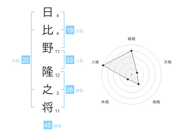 日比野 隆之将さんの総格は45画の4点!
