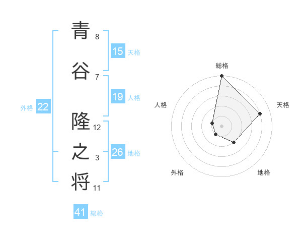 青谷 隆之将さんを姓名の画数から五運を鑑定