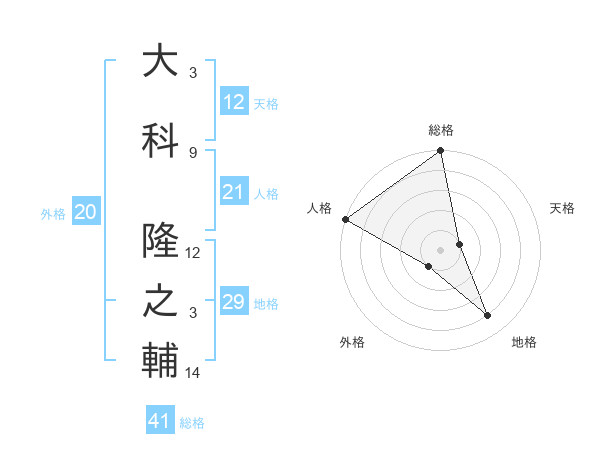 大科 隆之輔さんを姓名の画数から五運を鑑定