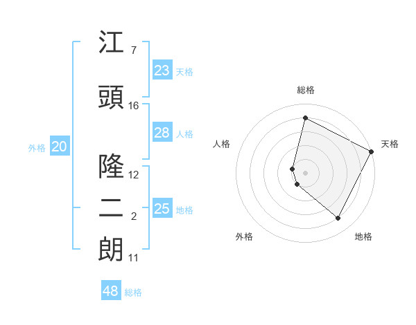 江頭 隆二朗さんの天格は23画の5点!