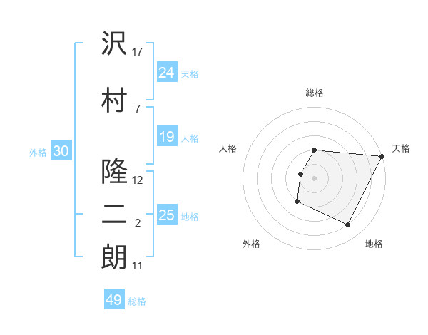 沢村 隆二朗さんを姓名の画数から五運を鑑定