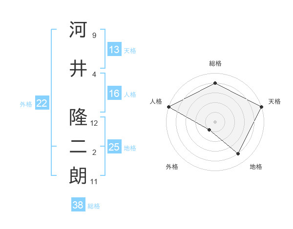 河井 隆二朗さんを姓名の画数から五運を鑑定