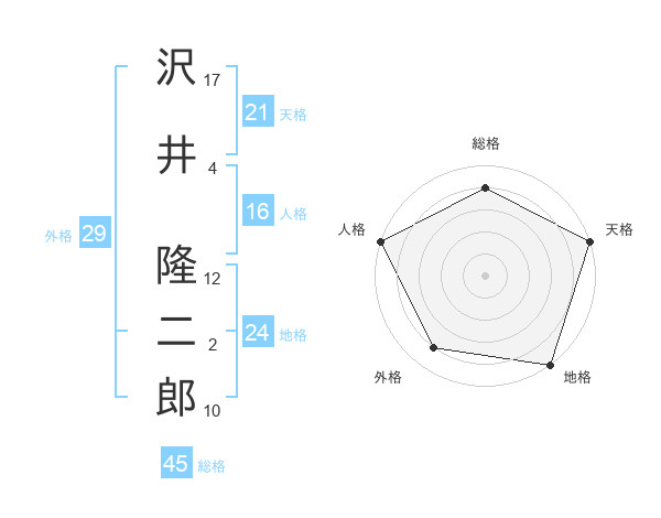 沢井 隆二郎さんを姓名の画数から五運を鑑定