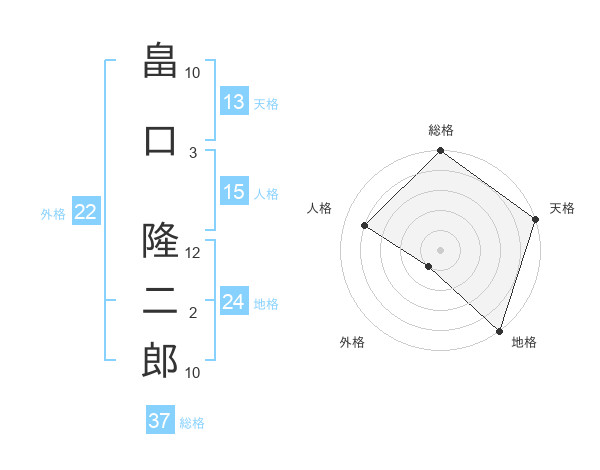 畠口 隆二郎さんを姓名の画数から五運を鑑定