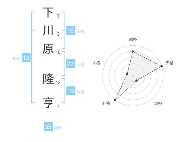 下川原 隆亨さんの総格は35画の4点!