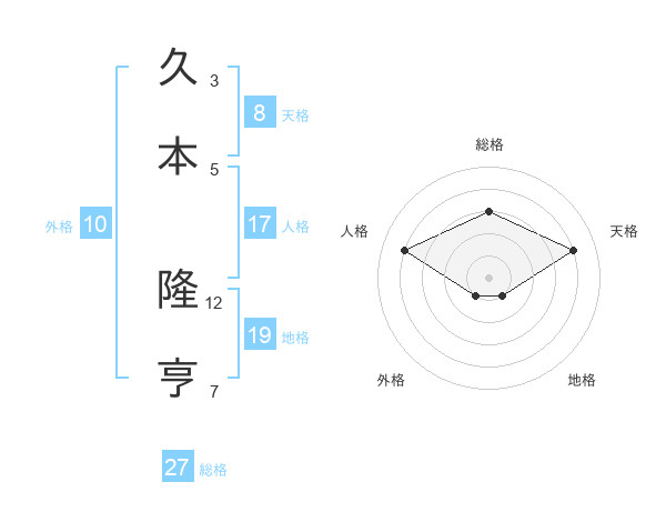 久本 隆亨さんの総格は27画の3点!