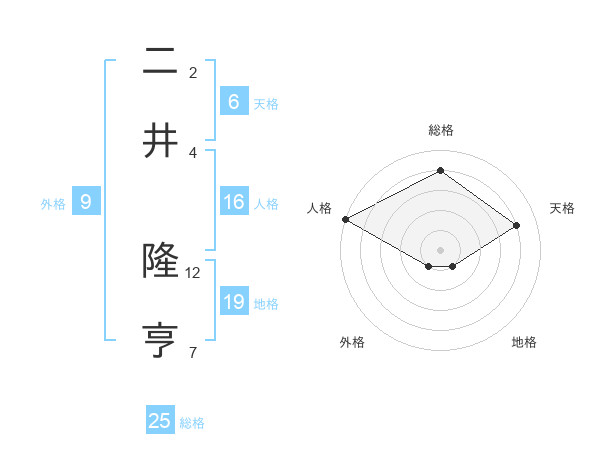 二井 隆亨さんを姓名の画数から五運を鑑定