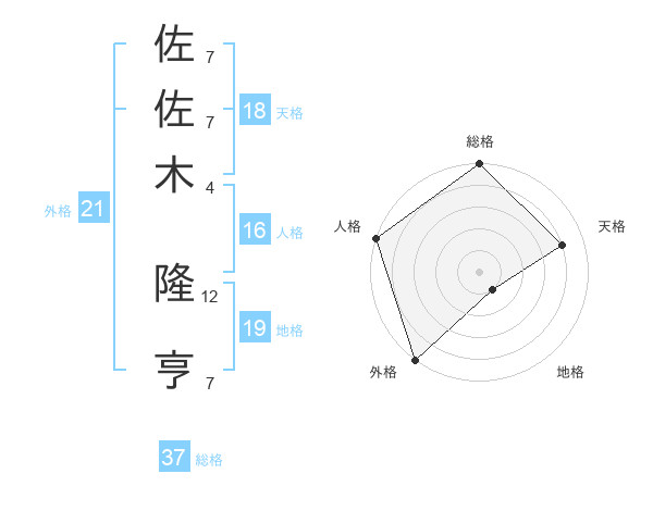 佐佐木 隆亨さんを姓名の画数から五運を鑑定