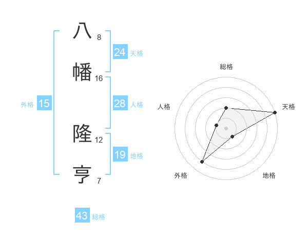 八幡 隆亨さんの天格は24画の5点!