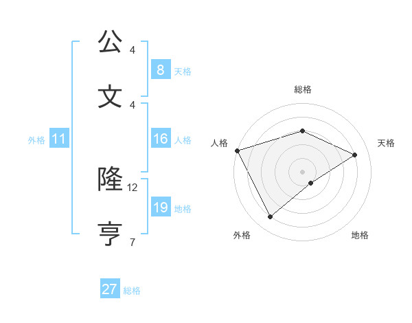 公文 隆亨さんを姓名の画数から五運を鑑定