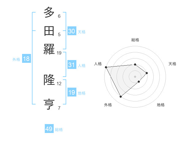 多田羅 隆亨さんを姓名の画数から五運を鑑定