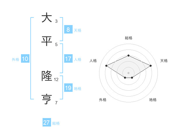 大平 隆亨さんの総格は27画の3点!