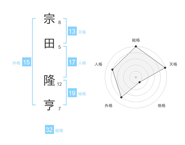 宗田 隆亨さんを姓名の画数から五運を鑑定