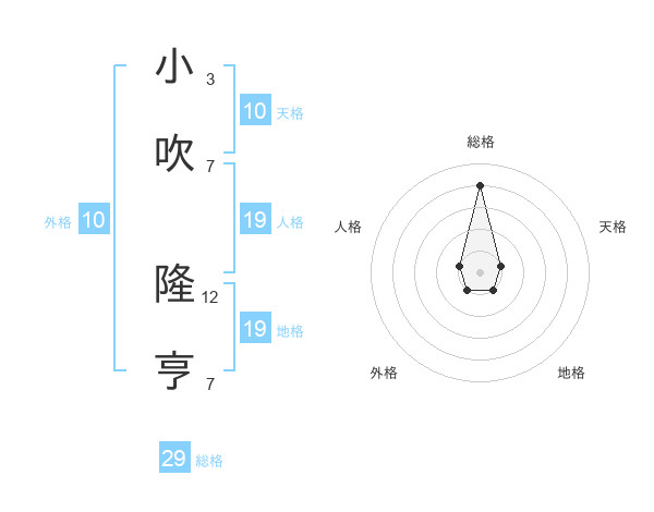 小吹 隆亨さんの総格は29画の4点!