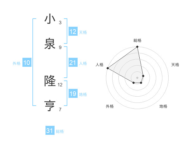 小泉 隆亨さんの総格は31画の5点!