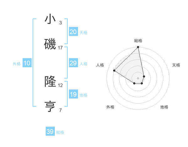 小磯 隆亨さんを姓名の画数から五運を鑑定