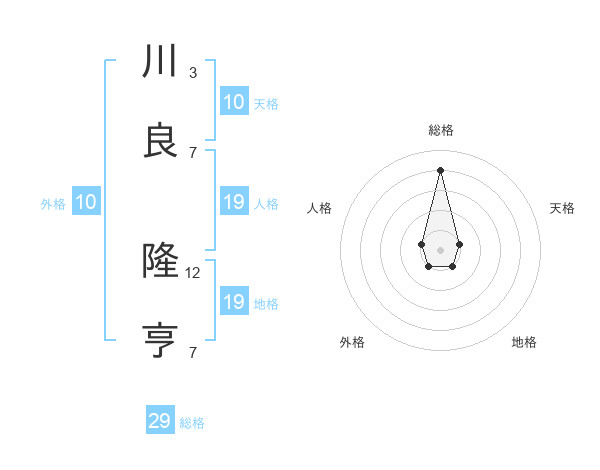 川良 隆亨さんを姓名の画数から五運を鑑定
