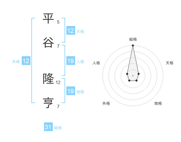 平谷 隆亨さんを姓名の画数から五運を鑑定
