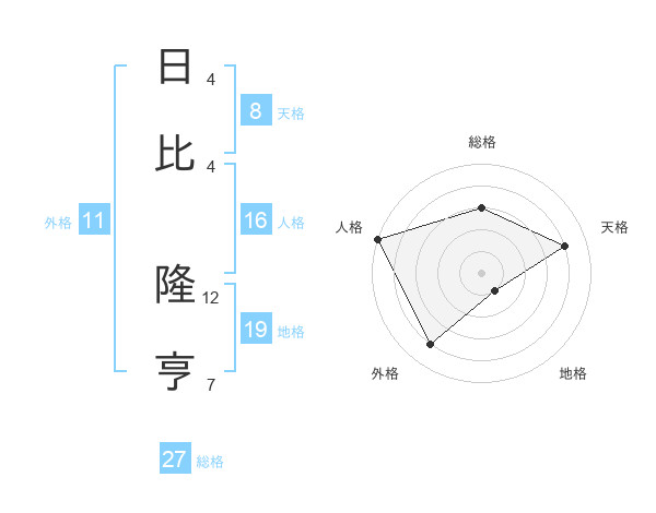 日比 隆亨さんを姓名の画数から五運を鑑定