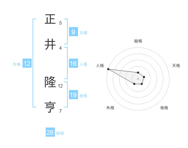正井 隆亨さんの総格は28画の1点!