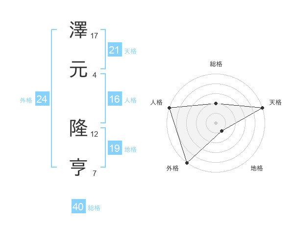 澤元 隆亨さんを姓名の画数から五運を鑑定