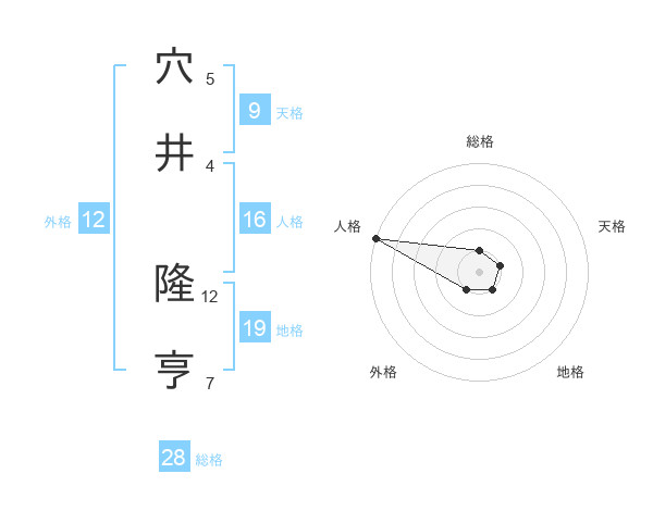穴井 隆亨さんの総格は28画の1点!
