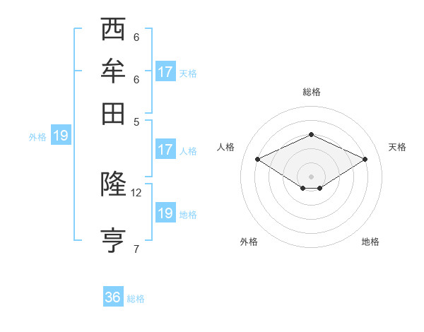 西牟田 隆亨さんを姓名の画数から五運を鑑定