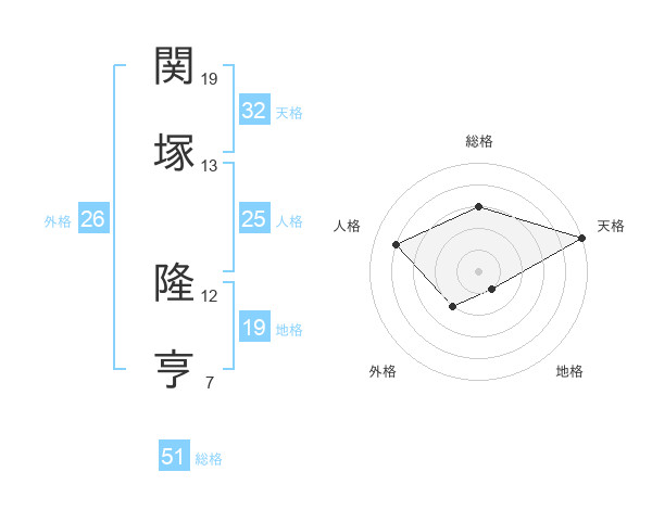 関塚 隆亨さんの総格は51画の3点!