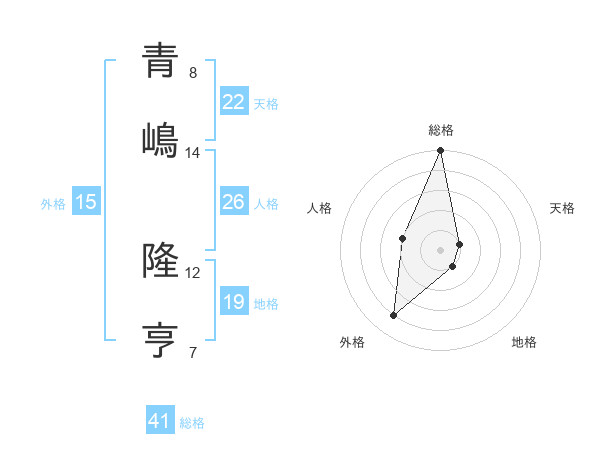 青嶋 隆亨さんの総格は41画の5点!