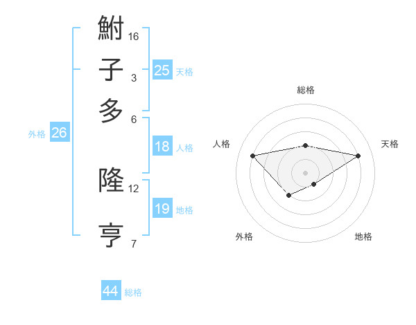 鮒子多 隆亨さんを姓名の画数から五運を鑑定