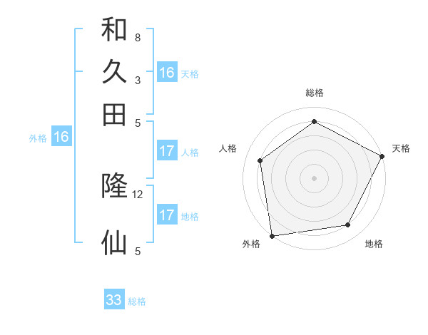 和久田 隆仙さんを姓名の画数から五運を鑑定