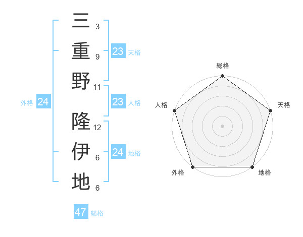 三重野 隆伊地さんを姓名の画数から五運を鑑定