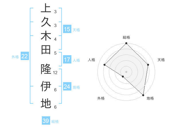 上久木田 隆伊地さんの総格は39画の5点!
