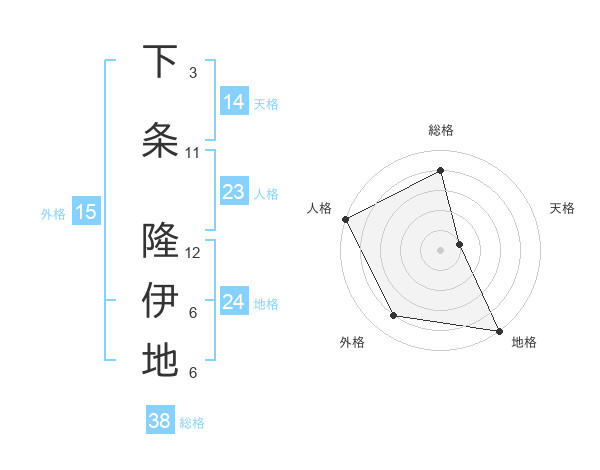 下条 隆伊地さんを姓名の画数から五運を鑑定