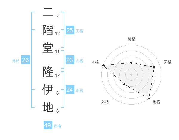二階堂 隆伊地さんの総格は49画の2点!
